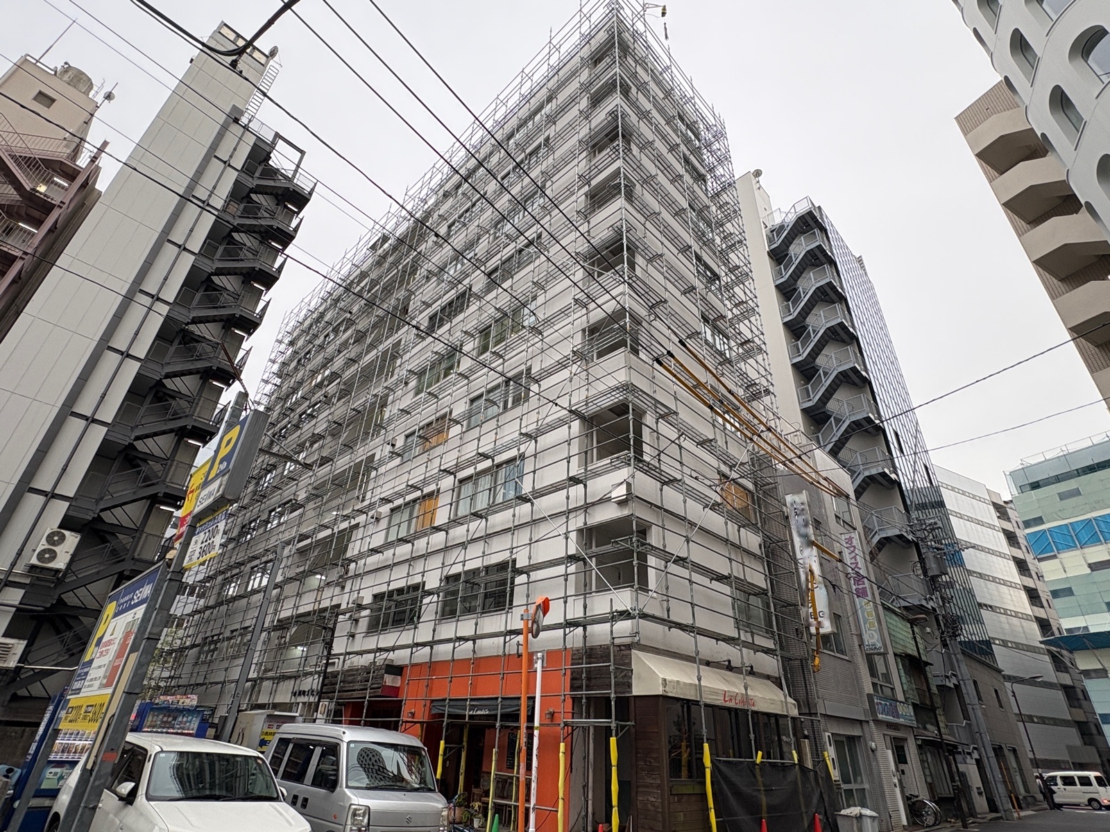 足場、養生、洗浄、三度塗り、保証を含む