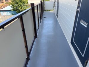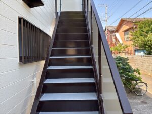 紫外線や雨風にさらされる通路や階段は、経年による劣化が進み保護性能が低下していました。建物の強度が低下するだけでなく、入居者様の安全性を確保するためにも、適切なメンテナンスが不可欠です。